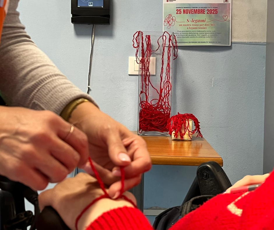 Per dare concretezza al messaggio, ogni struttura che ha aderito al progetto S-legami ha messo a disposizione di chi volesse partecipare un filo rosso da indossare, questo gesto semplice porta con sé molti significati: